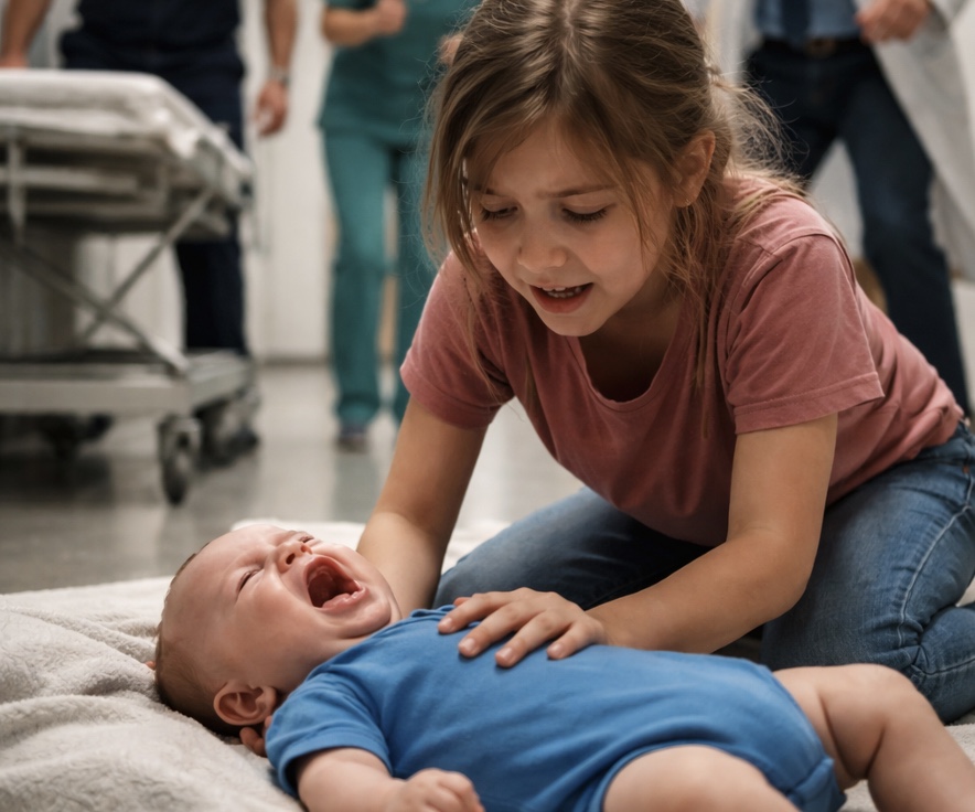 «Девушка, вы не можете здесь находиться», — начала одна из медсестёр с ноткой недоверия в голосе, но девочка уже подошла к люльке, встала между медперсоналом и младенцем, будто её вела какая-то внутренняя уверенность.
