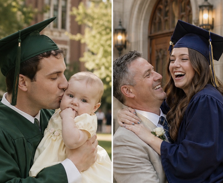 “Я заполнила все формы,” — продолжила Эйнсли. — “Все до одной. Отправила всё, что они просили. Я сделала это за несколько недель до выпуска. Я хотела удивить тебя сегодня. Тебе больше не нужно гадать, что бы было, папа.”